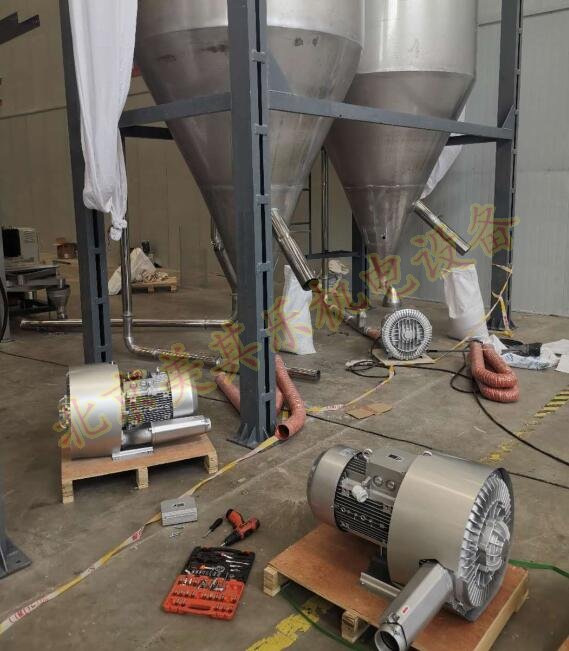 吸料高壓風機廣泛用在注塑成型的原料輸送,可以自動送料給到注塑機。當注塑機的料桶內缺少料時,會給到吸料風機信號。