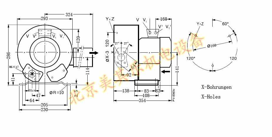 雙葉輪1.3kw旋渦氣泵尺寸圖: